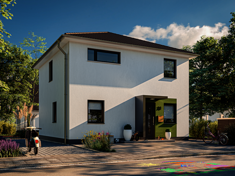 ab Preis1 €Abbildungen enthalten Sonderwünsche die nicht Vertragsbestandteil sind, regionale Preis- und Ausstattungsänderungen möglich. Schlüsselfertig im Sinne dieses Angebotes bedeutet: ohne Tapezier- und Teppichverlegearbeiten.